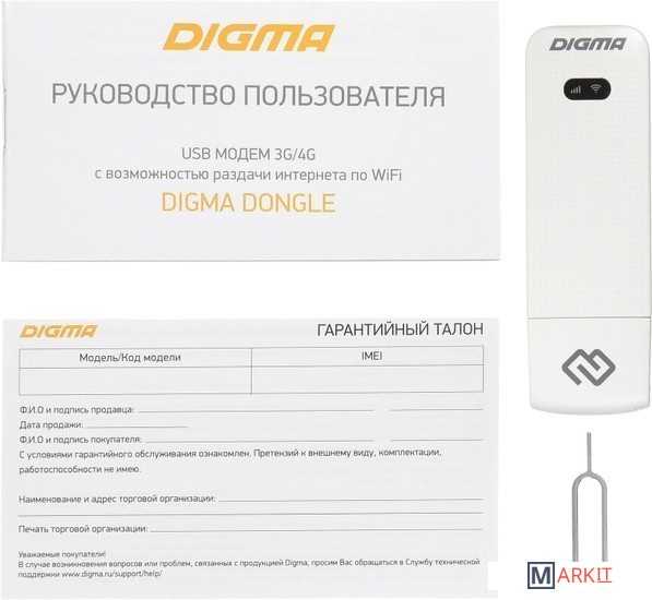 Markit » Беспроводные адаптеры » 4G модем Digma Dongle (белый)