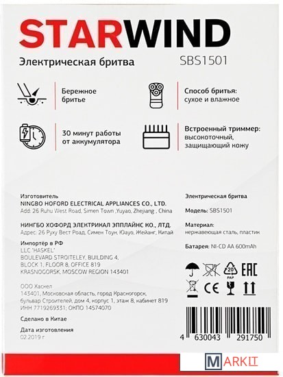 Markit » Мужские электробритвы » Электробритва StarWind SBS1501