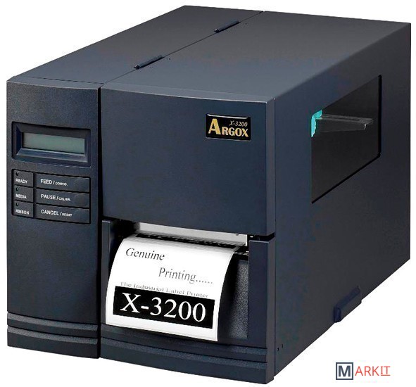 Argox X-3200 — многофункциональный принтер печати больших объемов партий этикеток. Предназначен для использования на производстве, в промышленности, складских комплексах и логистике.Принтер Xellent 3200 отличает высокая скорость печати — до 152 мм/сек при повышенном разрешении печати до 300 dpi, надёжный металлический корпус, простота эксплуатации, большая емкость заправки расходных материалов.Наличие на передней панели принтера LCD-дисплея и управляющих кнопок позволяют производить настройку принтера без подключения к компьютеру, а использование внешней клавиатуры ArgoKee позволяет обеспечить автономную работу принтера.Простота подключения принтера Xellent-3200 к товаро-учётной системе обеспечивается драйверами для операционной системы Windows, которые поставляются в комплекте с принтером. Кроме того, в комплект поставки принтера входит программное обеспечение для создания дизайна этикеток, редактирования логотипов и шрифтов принтера, а так же утилита управления принтером, блок питания, инструкция по эксплуатации, образцы расходных материалов: этикеток и красящей ленты.