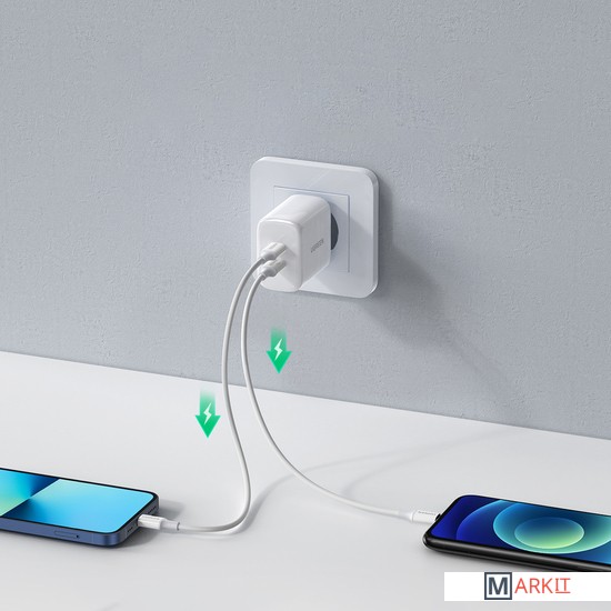 Выход: Один порт: 5 В/3 А 9 В/2,22 А 12 В/1,67 А (макс. 20 Вт) Два порта: 5 В/3 А 9 В/2,22 А 12 В/1,67 А (20 Вт2)Совместимость с: PD3.0 (PD2.0)QC4.0+ (QC4.0/QC3.0/QC2.0) SCP/FCP/AFCBC1.2--5V1.5A