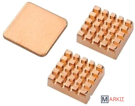 Комплект из двух медных радиаторов и одной медной пластины для охлаждения микросхем одноплатного микрокомпьютера. 14x12x5.5мм, 14x12x5.5мм и 15x15x1ммСовместимость Raspberry PI 3 model B+, Raspberry PI 4 model B