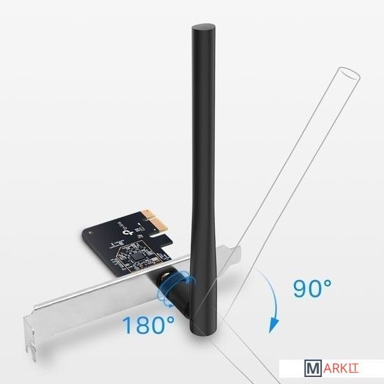 Archer T2E позволяет создать на компьютере двухдиапазонный Wi‑Fi. Также его можно использовать в качестве хот‑спота, чтобы делиться интернетом с другими Wi‑Fi устройствами. Используйте 2,4 ГГц для просмотра веб‑страниц, работы с почтой и соцсетей, а 5 ГГц — для онлайн‑игр и стримов.MU-MIMO позволяет создать несколько одновременных потоков данных, что улучшает пропускную способность и эффективность при использовании MU‑MIMO роутера.WPA3 — это новейший протокол, повышающий безопасность персональных Wi‑Fi сетей. Более надёжное шифрование Wi‑Fi пароля и защита от брутфорс‑атак обеспечат полноценную защиту домашнего Wi‑Fi.Возможность установки антенны в необходимое положение и её замены любой другой совместимой направленной антенной для расширения покрытия.Для совместимости с любым типом компьютерного корпуса в комплекте идёт стандартная и низкопрофильная планки.