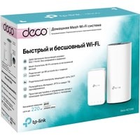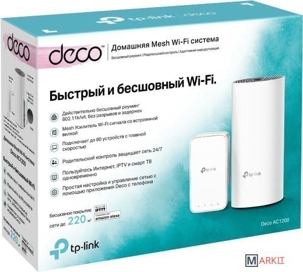 Для бесперебойного доступа к Wi-Fi во всём доме Deco использует систему модулей - избавьтесь от "мертвых зон" раз и навсегда. Комплект Deco E3 из двух устройств (роутер Deco E4R и усилитель сигнала Deco M3W) обеспечивают Wi-Fi на площади до 220 квадратных метров (версия EU). Более широкое покрытие Mesh Wi-Fi при подключении дополнительных усилителей сигнала Deco M3W к настенной розетке. Благодаря современной Mesh-технологии модули Deco образуют единую домашнюю сеть с одним именем. Ваши устройства будут автоматически переключаться между разными модулями Deco на высокой скорости, куда бы вы ни пошли. Deco Е3 обеспечивает быстрое и стабильное соединение со скоростью до 1167 Мбит/с и работает с основными интернет-провайдерами и модемами. Deco способен поддерживать работу даже самой загруженной сети, обеспечивая одновременное соединение для более чем 100 устройств. Родительский контроль ограничивает время в сети и блокирует соответствующий контент, создавая уникальные профили для каждого члена семьи.